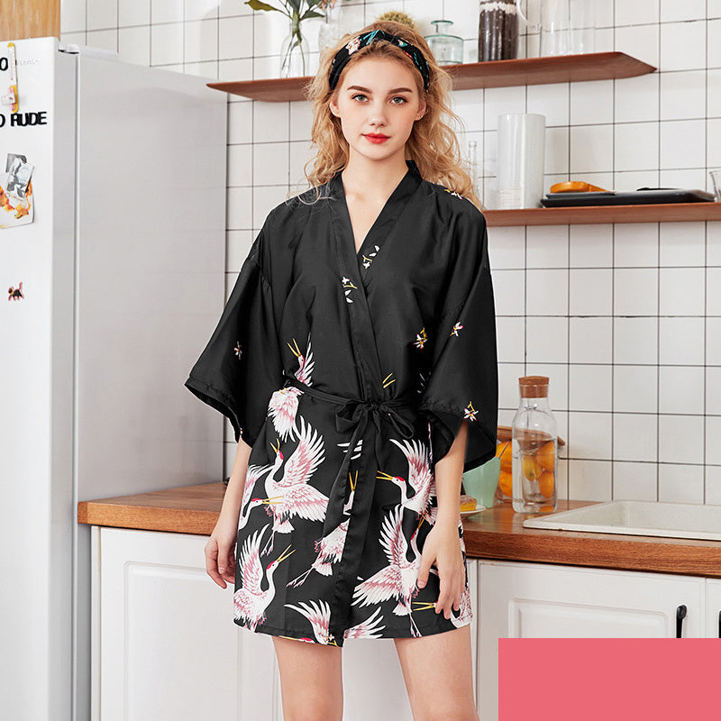 Ce kimono en soie fluide marie la grâce du style japonais à la légèreté du confort coréen. Son design délicatement orné de grues symboliques, emblèmes de beauté et de longévité, en fait une pièce à la fois élégante et pleine de sens.